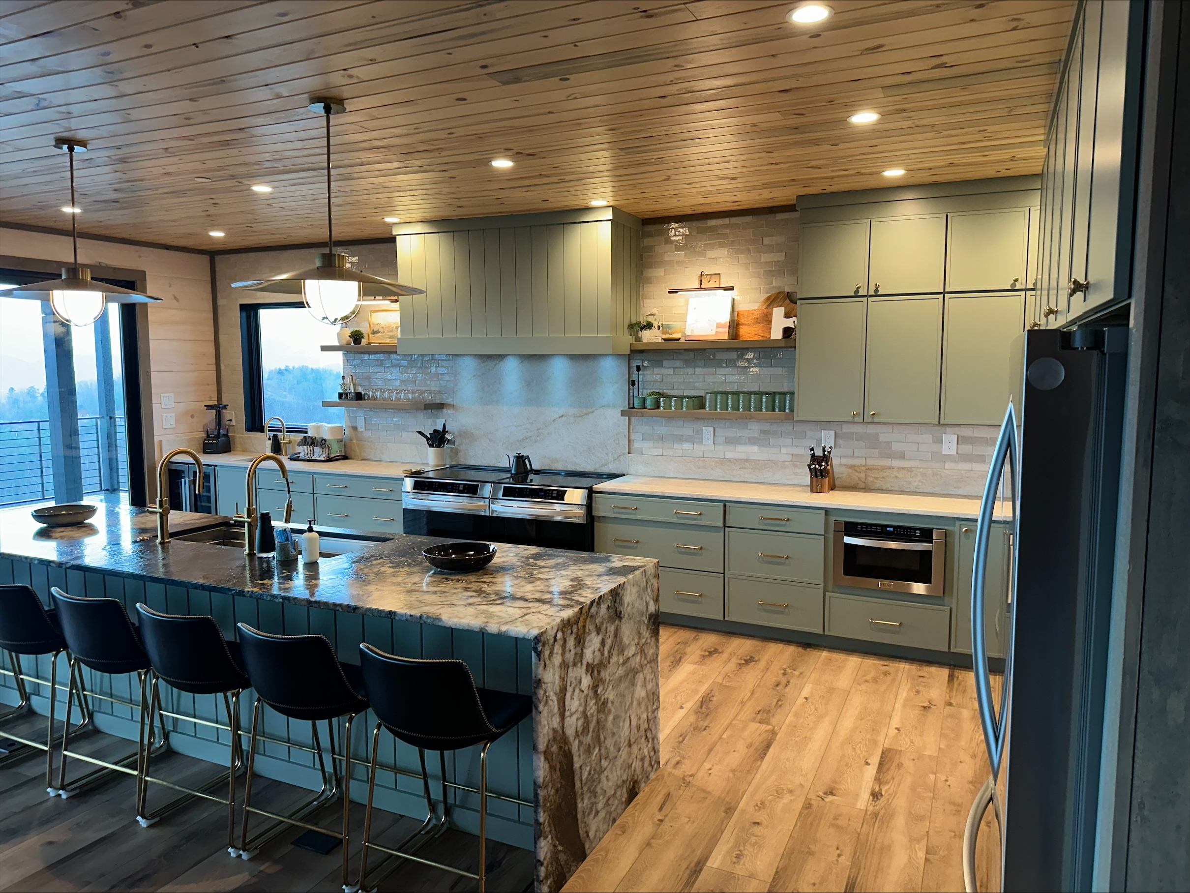 Modern elegance meets mountain living in this 2025 built luxury cabin, designed with Skinny Shaker styled cabinets, nested high above Wears Valley in Sevierville, TN.